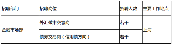 2019年浦發銀行總行金融市場板塊相關部門5月招聘啟事