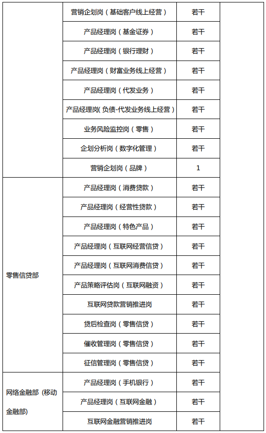 2019年浦發銀行總行零售業務板塊相關部門招聘公告