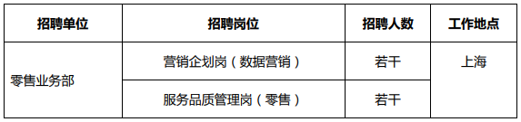 三、招聘崗位列表 (工作地點為上海的崗位,主要面向上海地區招聘)