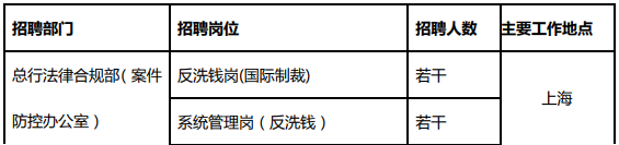 應聘條件: 35 周歲以下;金融、法律、會計、計算機等相關專業全日制本科及以上學歷;3 年以?a href='http://www.llwin.cn/tag/xiantao_13617_1.html' target='_blank'>仙桃狄薪鶉謚撇檬攣窕蚍聰辭芾砉ぷ骶椋?3 年以上反洗錢合規內控審計或咨詢工作經驗;具有大學英語 6 級或同等語言水平;工作勤奮踏實,具有較強的組織管理、協調溝通能力和團隊合作精神;熟練使用 OFFICE 辦公室軟件;具備商業銀行總行或一級分行合規管理部門工作經驗,或具有較強數據行業務系統反洗錢數據有效性評估工作;負責反洗錢監測算法的創新和優化;牽頭全行反洗錢信息系統相關的其他工作等。
