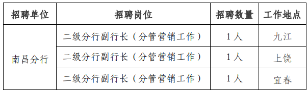 江西金融市場上樹立起了高效穩健的品牌形象。因業務發展需要,現對以下崗位進行社會公開招聘,誠邀優秀人士加盟浦發銀行南昌分行。