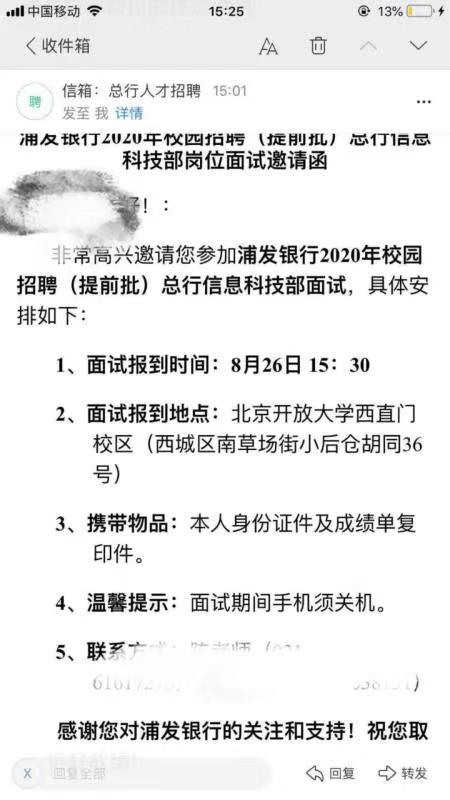 [全國]2020浦發(fā)銀行校園招聘(提前批)總行信息科技部面試通知