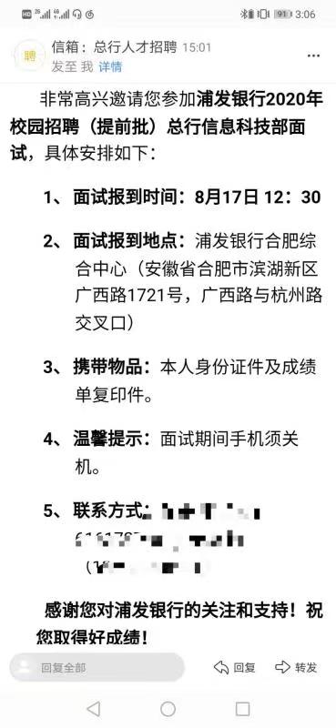 [安徽]2020浦發銀行校園招聘(提前批)總行信息科技部面試通知(安徽地區)