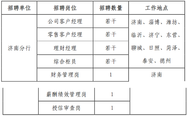 德州等十一地市設(shè)有63家經(jīng)營機(jī)構(gòu)。因業(yè)務(wù)發(fā)展需要,現(xiàn)對以下崗位面向社會公開招聘,誠邀優(yōu)秀人士加盟浦發(fā)銀行濟(jì)南分行。