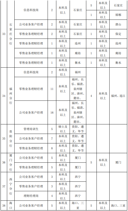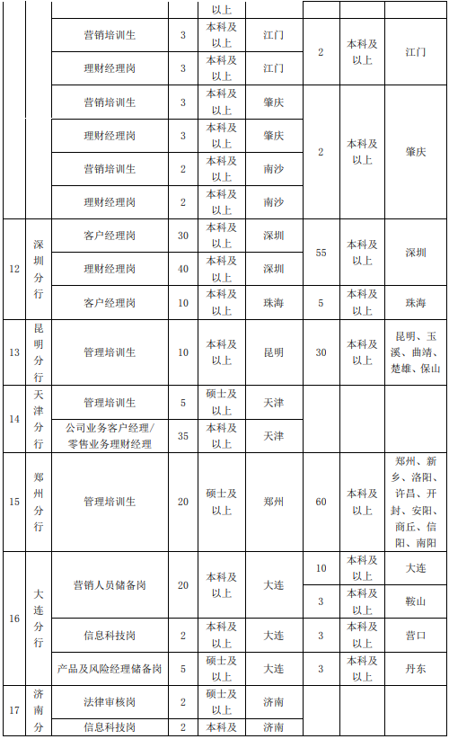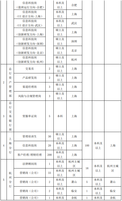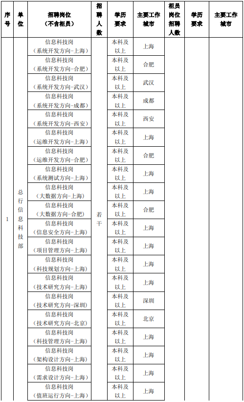 3、專業(yè)不限,其中總行信息科技部招聘崗位以計算機與信息技術、大數(shù)據(jù)挖掘、軟件工程、人工智能、金融工程、統(tǒng)計學等理工科專業(yè)為主。