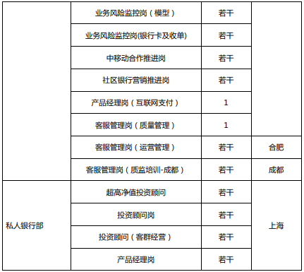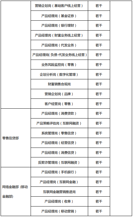 2019年浦發銀行總行零售業務板塊相關部門招聘啟事