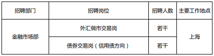 2019年浦發銀行總行金融市場板塊相關部門招聘啟事