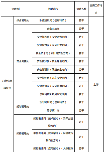 2019年浦發銀行總行信息科技部招聘啟事(12.11)