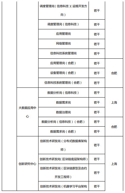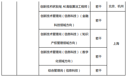 三、招聘崗位列表 (工作地點在上海的崗位,主要面向上海地區招聘)