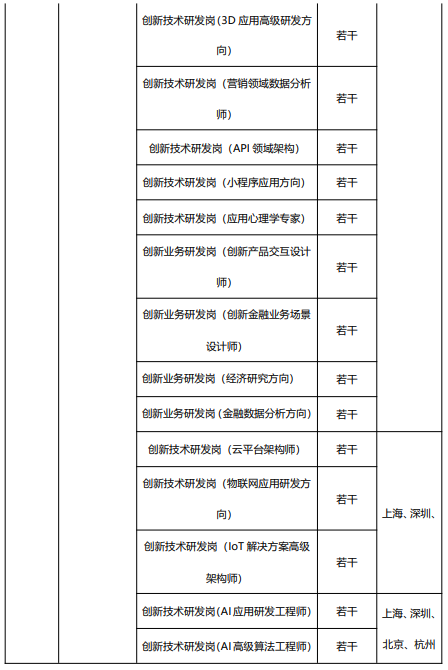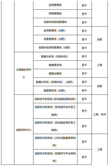 三、招聘崗位列表 (工作地點在上海的崗位,主要面向上海地區招聘)