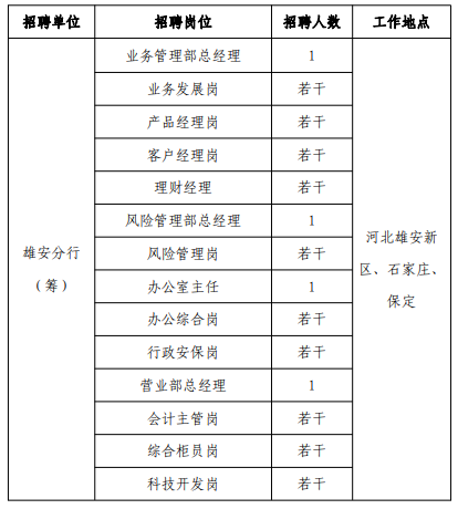 2020年浦發銀行雄安分行(籌)招聘啟事