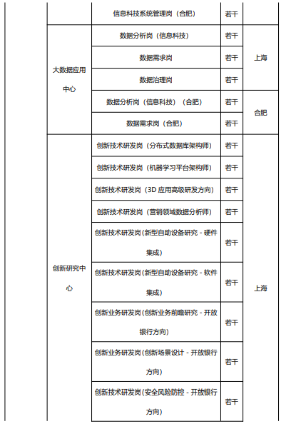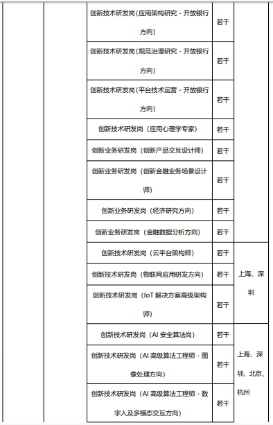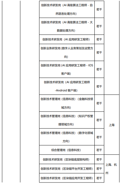 三、招聘崗位列表 (工作地點在上海的崗位,主要面向上海地區(qū)招聘)
