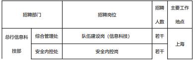2020浦發(fā)銀行總行信息科技部招聘啟事