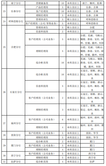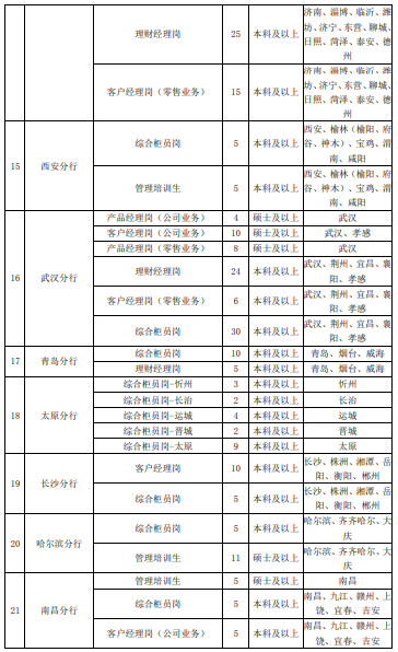 3、專業不限,其中總行信息科技部招聘崗位以計算機與信息技術、大數據挖掘、軟件工程、人工智能、金融工程、統計學等理工科專業為主。