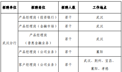 應(yīng)聘條件:年齡 35 周歲及以下,全日制本科及以上學歷;2 年及以上金融專業(yè)工作經(jīng)歷;熟悉私人銀行產(chǎn)品和服務(wù)及各類投資市場,能夠為客戶制訂專業(yè)的資產(chǎn)配置建議方案,具有服務(wù)高端客戶的經(jīng)驗,具有良好的溝通能力。