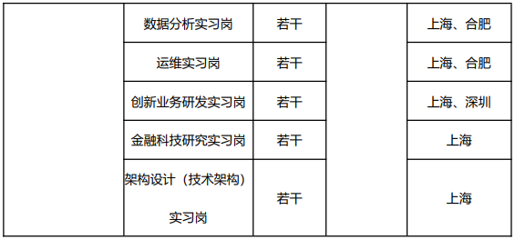 三、招募崗位列表 (主要面向實習地點所在地區招聘)