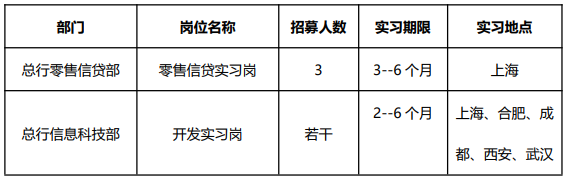 實習人員條件:本科及以上全日制在校學生;專業不限,金融、經濟、計算機、數學、統計等專業優先;外語水平、計算機應用能力出色;品行端正、學業優良、身心健康;認真細致,勤奮踏實,具備高度的責任心和敬業精神;黨員優先;每周能保證3個工作日以上實習時間。