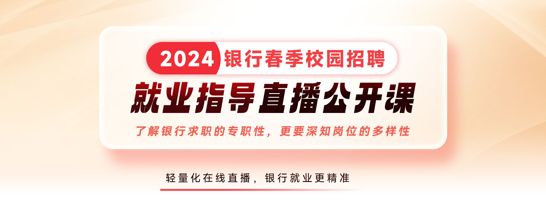 | 講座系列 | 講座主題 | 講座日期 | 講座時(shí)間 | 講座入口 | 2024銀行春季校園招聘知識(shí)科普 |