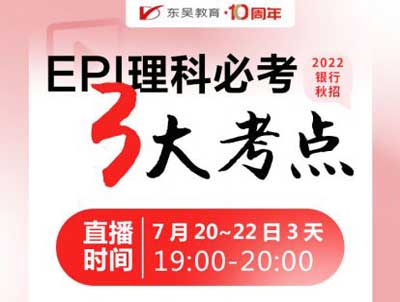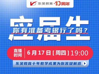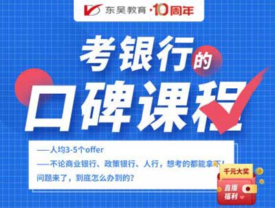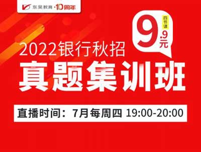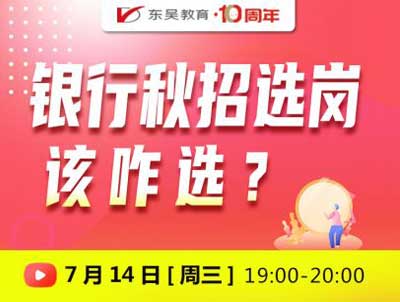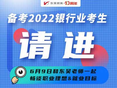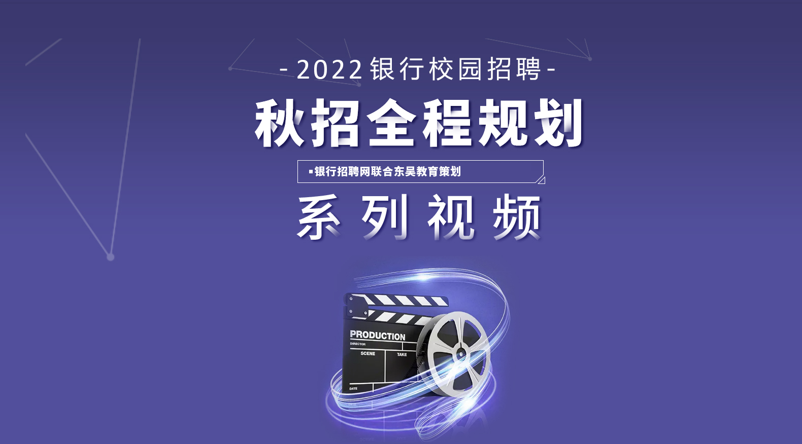 2022銀行秋季校園招聘正在進行,對于有志于銀行工作的同學們,現(xiàn)在正是備考期。為幫助大家更好的復(fù)習,銀行招聘網(wǎng)聯(lián)合東吳教育特此策劃了2022銀行秋季校園招聘全程規(guī)劃系列視頻,預(yù)祝大家旗開得勝!