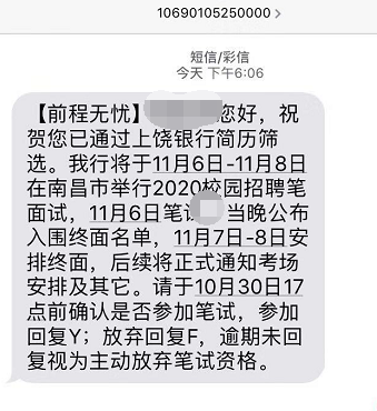 2020年上饒銀行秋季校園招聘筆試公告