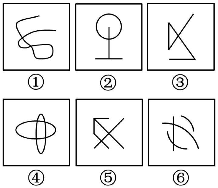 每道題包含六個圖形和四個選項,請把六個圖形分為兩類,使每一類圖形都具有各自的共同規律或者特征,并從四個選項中選出分類正確的一項。