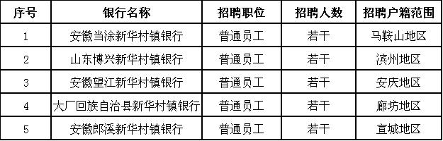 3、經初審符合條件者,將在新華村鎮銀行、馬鞍山農村商業銀行網站公布參加應聘人員名單、時間、地點等相關詳細信息,請應聘者及時查詢,恕不另行通知;