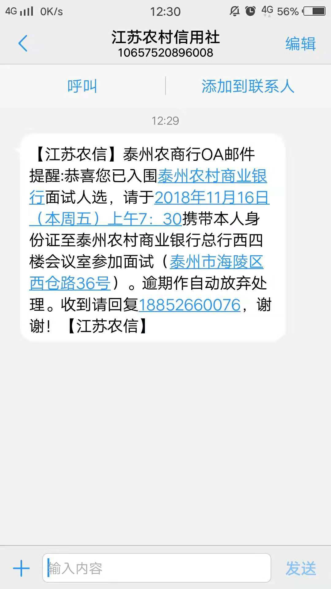 [江蘇]2019年泰州農商銀行校園招聘面試通知