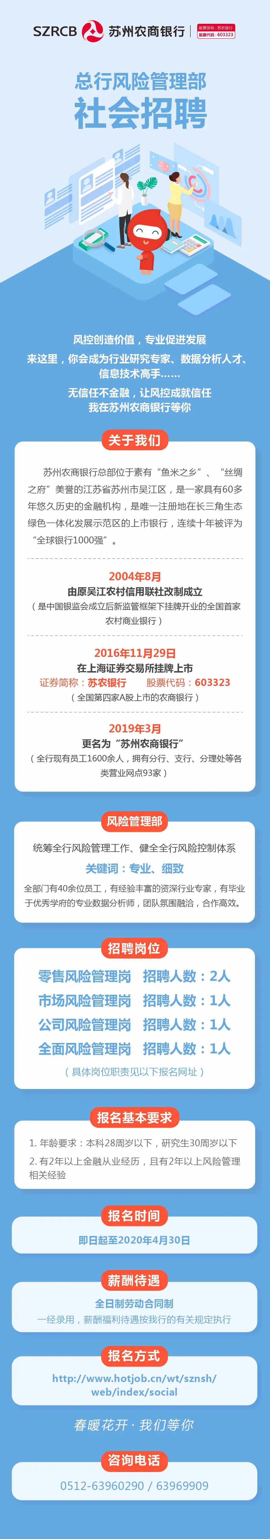 2020年蘇州農(nóng)商銀行總行風(fēng)險管理部社會招聘啟事