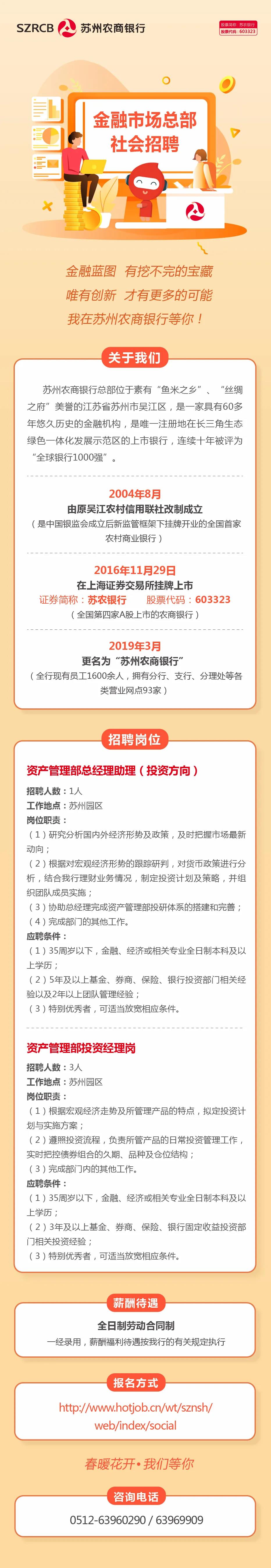 2020年蘇州農(nóng)商銀行總行金融市場總部社會招聘啟事