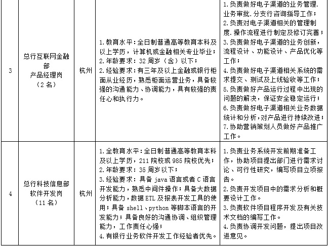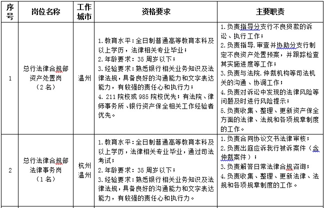現根據工作需要,溫州銀行總行部分職位面向社會公開招聘。具體情況如下: