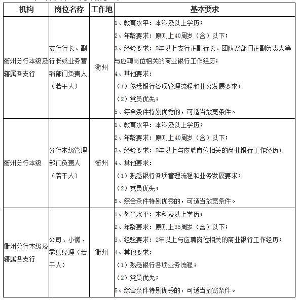 現根據工作需要,溫州銀行衢州分行面向社會公開招聘。具體情況如下: