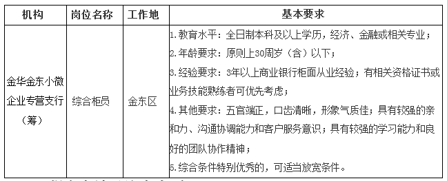 現因業務發展需要,溫州銀行金華分行部分職位面向社會公開招聘。