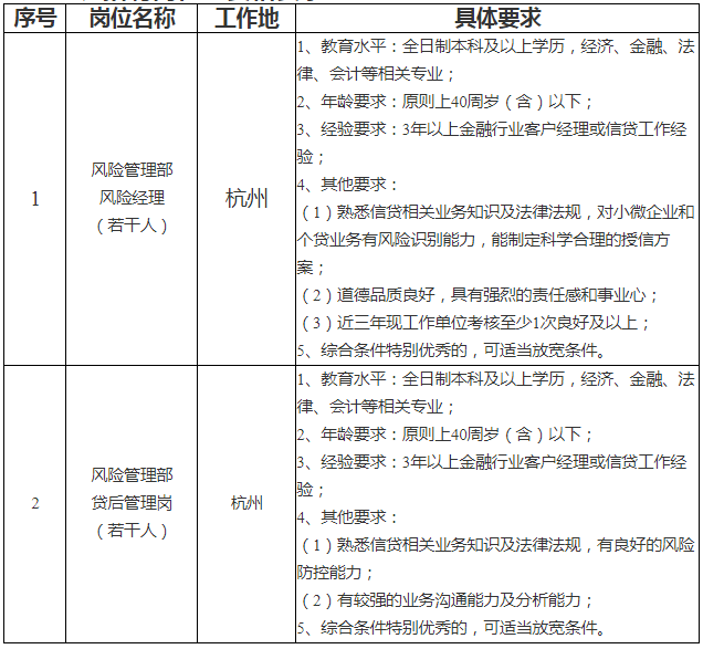現根據工作需要,溫州銀行杭州分行部分職位面向社會公開招聘。具體情況如下: