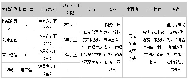 洞頭農村信用聯社是一個富有凝聚力并極具活力的團隊。多年來秉承“立于信、興于合、久于新”的企業理念和“潤澤三農、成就夢想”的企業使命,致力于打造服務三農的主力銀行、支持小微的伙伴銀行、普惠便捷的社區銀行。是全區金融機構中規模最大、網點最多、客戶數最多、金融覆蓋面最廣的金融機構。為做好靈昆轄區金融服務,我聯社擬設立靈昆營業網點,現面向社會公開招聘優秀人才。