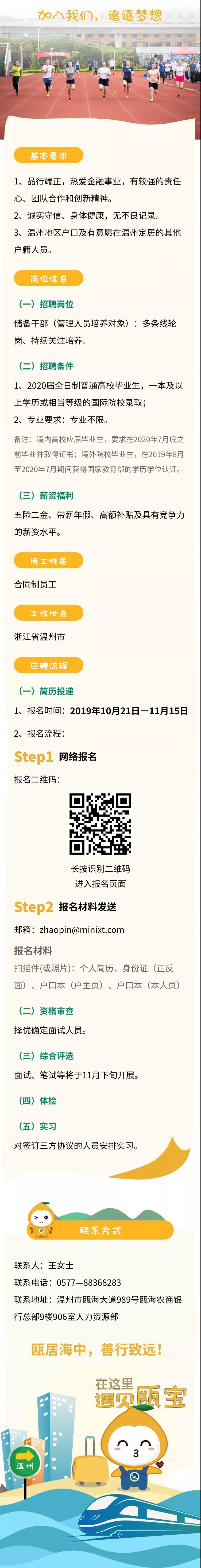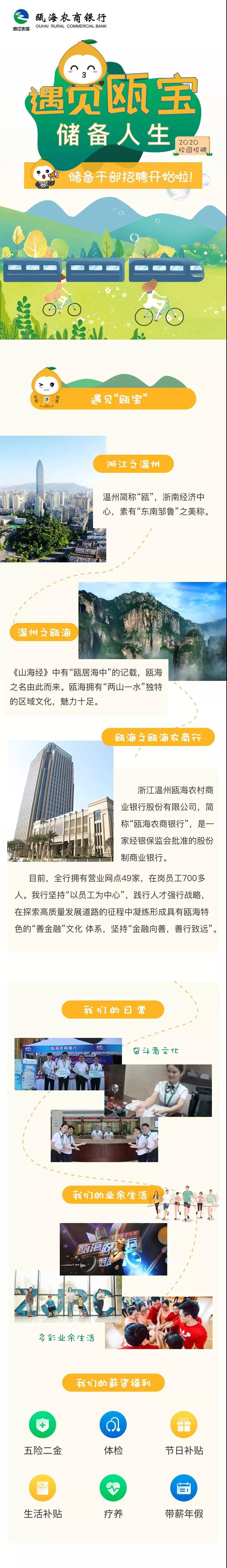 [浙江]2020甌海農商銀行儲備干部校園招聘正式啟動公告