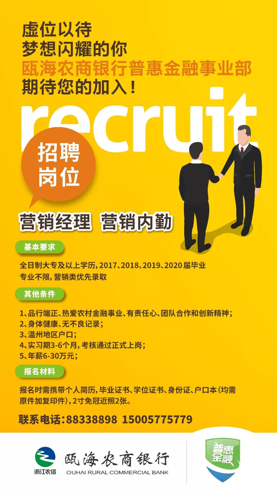 2020年甌海農(nóng)商銀行普惠金融事業(yè)部招聘公告