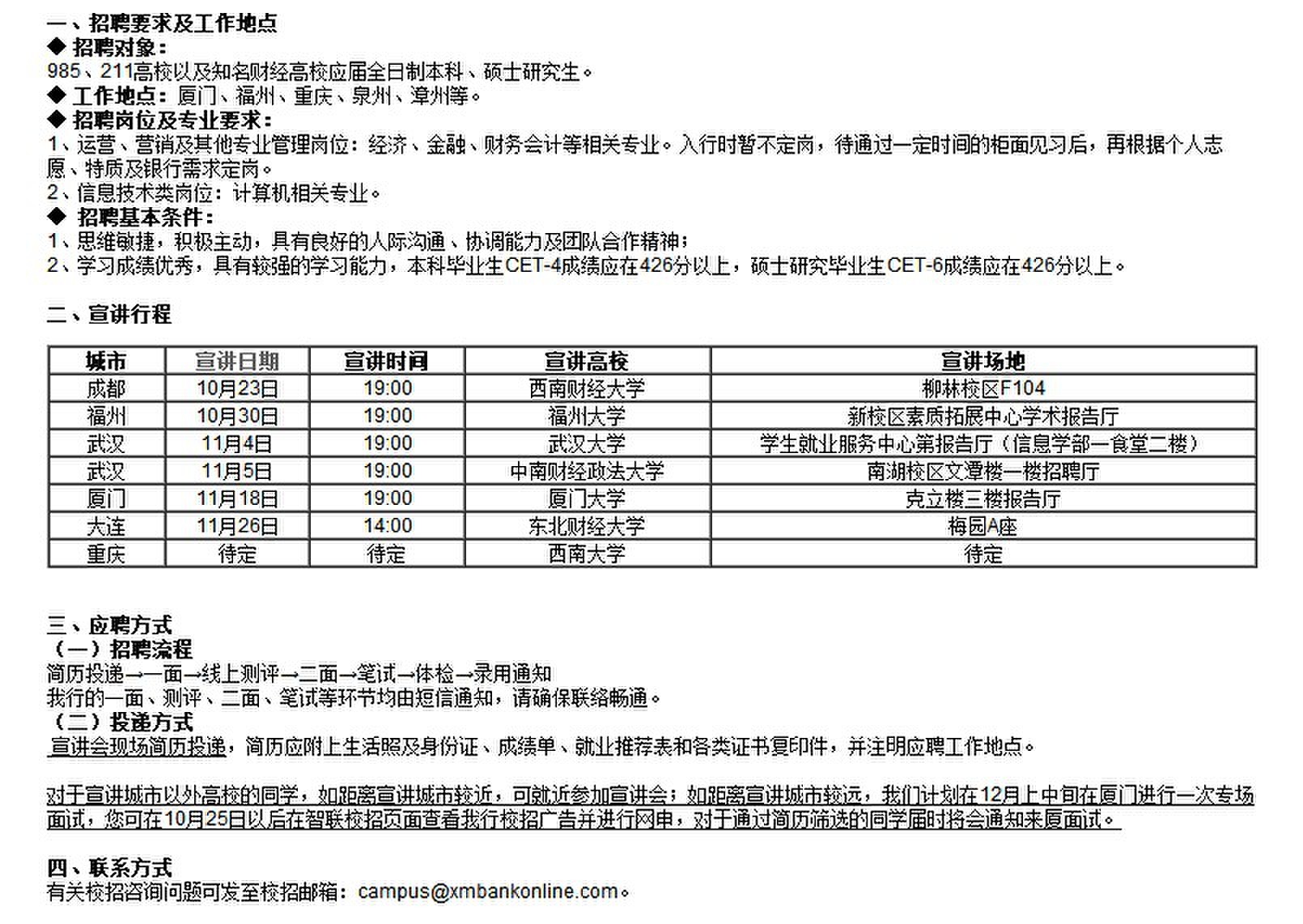 主頁 > 城市商業銀行招聘 > 廈門銀行招聘 > [福建]廈門銀行2014校園招聘宣講會公告