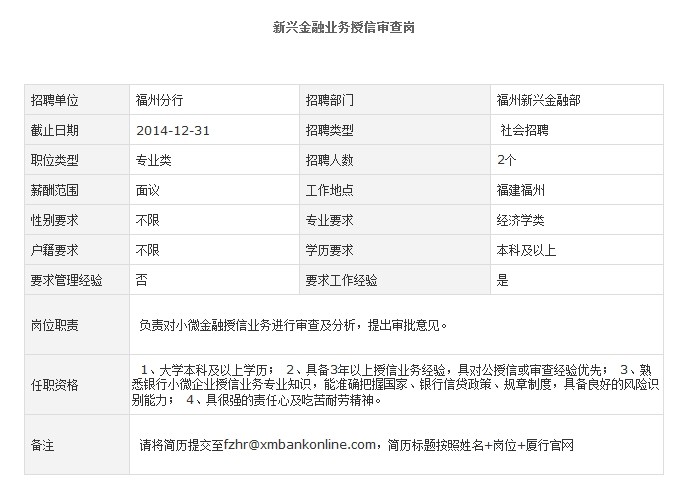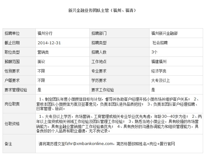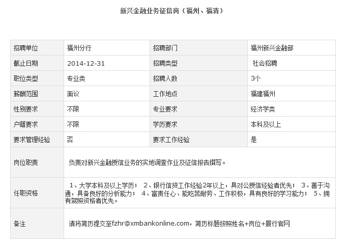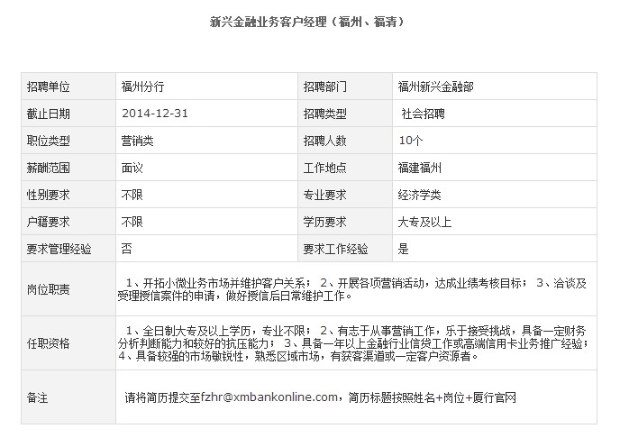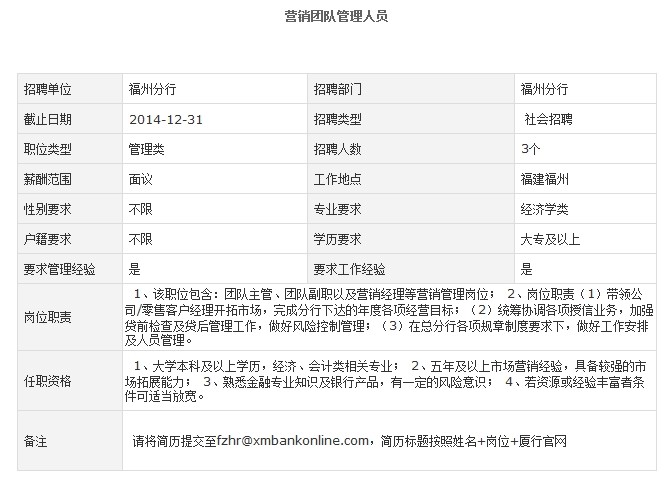 主頁 > 城市商業銀行招聘 > 廈門銀行招聘 > [福建]廈門銀行福州分行招聘啟事