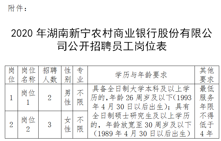 附件:《2020年湖南新寧農村商業銀行股份有限公司公開招聘員工崗位表》