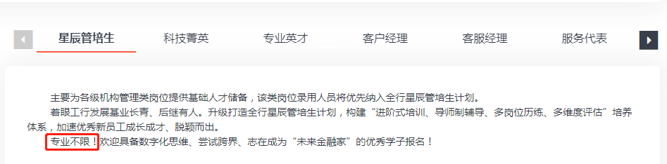上面我們說到,留學生由于專業不能和國內一一對應,在招聘時很有可能遇到專業不匹配的問題,但這個問題在銀行招聘中完全不存在,以工商銀行舉例,在最新的2023春季