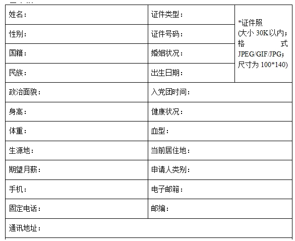 銀行網申簡歷模板