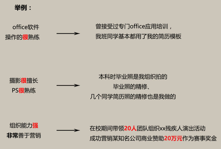 小事=大多數簡歷中也有,一筆帶過。多寫些別人沒有的,以突出特色。