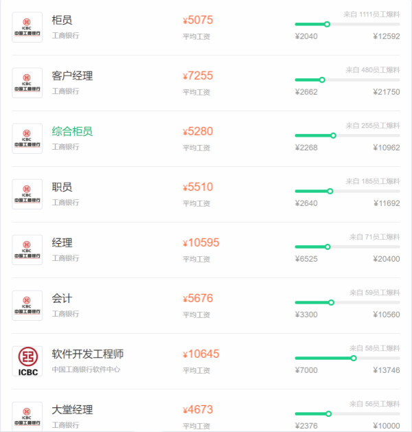(1)工商銀行的工資構(gòu)成:基礎(chǔ)工資+績(jī)效工資+其他福利待遇,剛進(jìn)入工商銀行的人大多數(shù)都是從柜員做起,才會(huì)之間進(jìn)入其他部門,也就是工商銀行最低的職級(jí),一般基礎(chǔ)工資則是3000元至6000元不等。