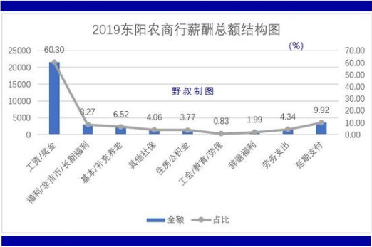 以浙江東陽農商銀行2019年的數據為例。這一年該銀行實際支付薪酬32482.25萬元,延期支付薪酬3353.45萬元,合計薪酬總額為3.58億元。