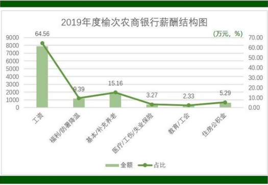 首先,以榆次農(nóng)商銀行薪酬結(jié)構(gòu)為重點(diǎn)分析。2019年,該銀行員工的工資獎(jiǎng)金為7886.13萬元,占比64.56%,這一部分基本上是員工可以當(dāng)年拿到手的現(xiàn)金(高管人員還存在延期支付)。“五險(xiǎn)一金”合計(jì)2897.3萬元,占比23.72%,這一部分中除了補(bǔ)充醫(yī)療保險(xiǎn)可以實(shí)際到個(gè)人賬戶上使用之外,其他的一般不能當(dāng)年拿到。無論是工資與獎(jiǎng)金的占比,還是“五險(xiǎn)一金”的占比,山西榆次農(nóng)商銀行的結(jié)構(gòu)與全國(guó)其他銀行業(yè)機(jī)構(gòu)的相應(yīng)比例相近,算比較正常的薪酬結(jié)構(gòu)。