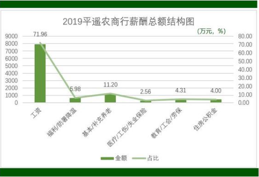 2019年度平遙農(nóng)商銀行薪酬總額10820.57萬元,其中工資獎(jiǎng)金7900.1萬元,占比71.96%;但是福利(含取暖和降溫費(fèi))占比只有5.98%,“五險(xiǎn)一金”合計(jì)占比17.76%(相關(guān)詳情見本文附圖五),后兩項(xiàng)都低于榆次農(nóng)商銀行的占比。這也意味著,2019年平遙農(nóng)商銀行實(shí)發(fā)工資看上去和之前差不多,員工感受也許不大,但是實(shí)際上由于計(jì)提其他薪酬的相對(duì)減少而使個(gè)人總收入是減少了不少。