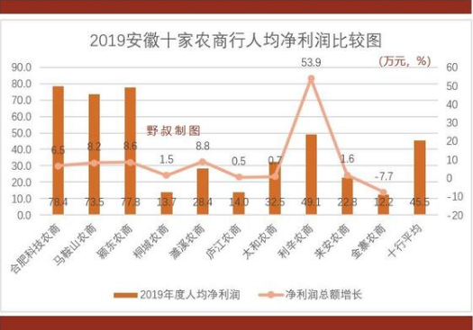其中,人均凈利潤最多的是合肥科技農商銀行78.4萬元,其次是潁東農商銀行77.8萬元;