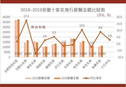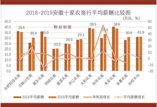 在全國農信系統當中,安徽這10家機構加權平均薪酬相對位于中上水平。例如,2019年度,10家上市農商銀行的加權平均薪酬為30.78萬元,貴州6家樣本農商銀行(主要分布于貴陽地區)和浙江12家樣本農商銀行加權平均薪酬分別約38.9萬元和33.73萬元,而山西8家樣本農商銀行與河北5家樣本農商銀行的加權平均薪酬分別約20.05萬元和21.87萬元。