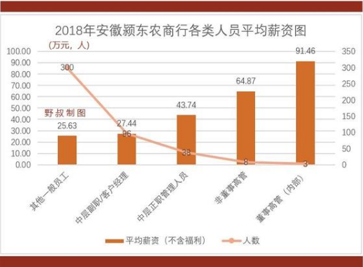 上述全員人均薪資28.72萬元,加上全員人均福利7.14萬元,即2018年度潁東農商銀行的全員年度平均薪酬35.86萬元;而三名董事高管人均年薪合計約106.5萬元,為全員平均薪酬的2.97倍。
