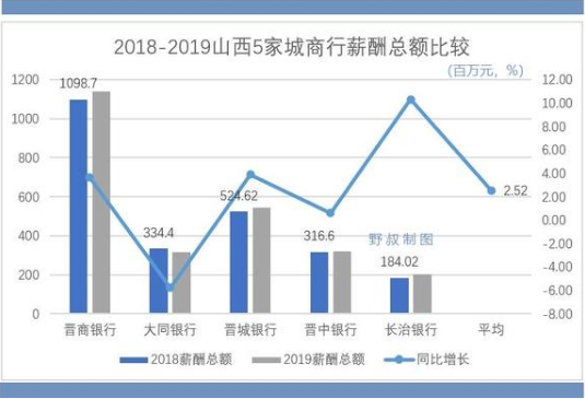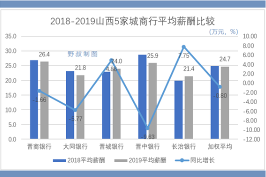 不過(guò),與山西8家樣本農(nóng)商銀行2019年度加權(quán)平均薪酬20.1萬(wàn)元相比,同一省份內(nèi)的5家城商銀行加權(quán)平均薪酬還是要高出不少。